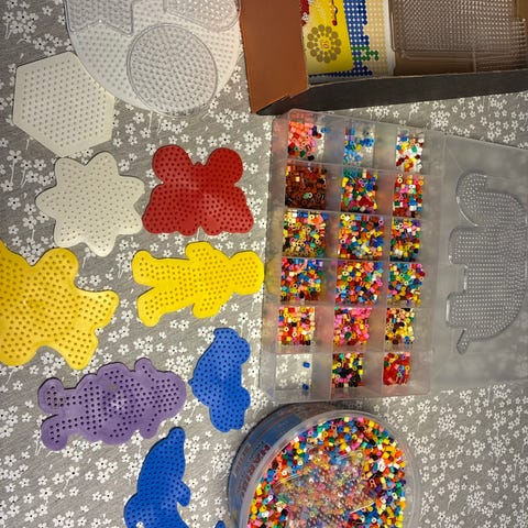 Hama perlesett med ulike motiver laget av fargeperler. Motivene inkluderer blant annet dyr og figurer med sesongpreg. Kan brukes til dekorasjon eller som utgangspunkt for nye perleprosjekter.