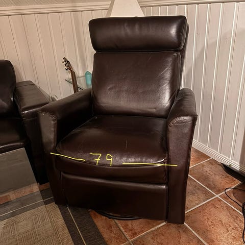 Den ene puta har «sprekt opp» og begynt å smuldre. Sofaen er lite brukt hos oss, har stått i en kjellerstue. God å sitte i, så om noen kan fikse på den, så kom gjerne og hent.
