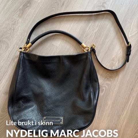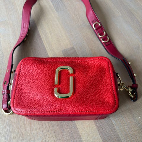 Marc Jacobs veske for dame i skinn. Vesken har en dyp rødfarge og justerbar skulderrem. Hovedrommet lukkes med glidelås og har mørkt innerfôr. Størrelsen passer til nødvendigheter som mobil, nøkler og liten lommebok. Egner seg som skulderveske eller crossbody-veske til hverdagsbruk.