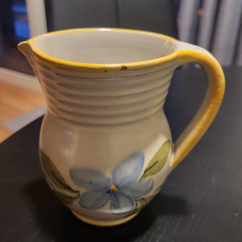 Måler i bredde 21 x 10 cm i høyde. Ingen skader eller krakkelering på den. Kanskje du har middag servicet til den? Røykfritt hjem. Hentes på Åkra eller sendes mot porto kr 69 postnord som er sporet.