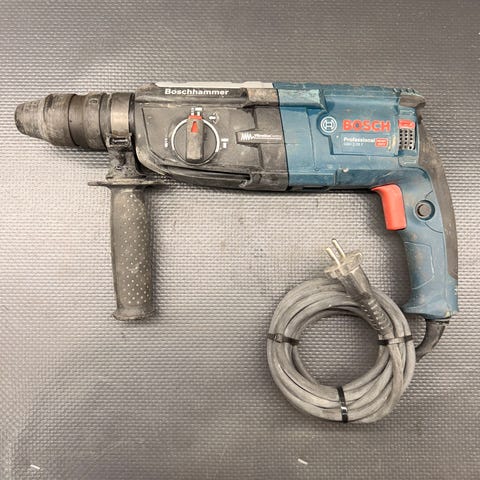 Kraftig batteridrevet borhammer fra Bosch, modell GBH 18V-26 Professional. SDS-Plus feste, egnet for boring og meisling i betong og mur. Brukt, med normale bruksspor, men fungerer som den skal. Selges uten batteri og lader. Selges som avbildet.