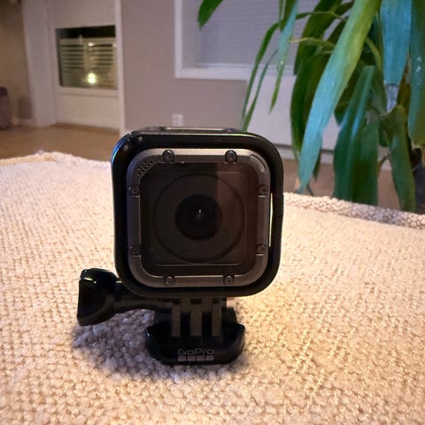 GoPro Hero5 Session actionkamera i kompakt kubeformet design i fargen svart. Kameraet er laget for å være lite og lett, og egner seg til montering på hjelm, sykkel, bil eller annet utstyr ved hjelp av kompatible fester.