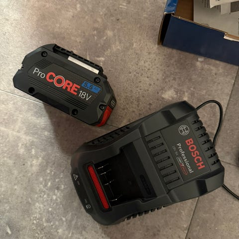 Selger en pakke med Bosch Professional 18V utstyr bestående av to ladere, to 6,0 Ah batterier og to 4,0 Ah batterier. Alt fungerer som det skal. Normal kosmetisk bruksslitasje. Selges samlet, som avbildet. Passer alle Bosch Professional 18V verktøy.