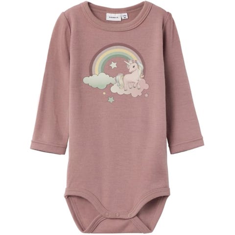 Hust & Claire body i ull til jente i størrelse 92. Langermet modell i rosa farge med bjørnemotiv foran. Mykt ullmateriale som egner seg godt som innerste lag til hverdagsbruk og i kjøligere vær. Bodyen har trykknapper i skrittet for enklere av- og påkledning.