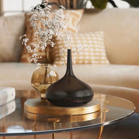 Rituals diffuser for parfyme patron i gullfarge. Produktet har en rund base med smal hals og leveres med tilhørende kabel. Passer til plassering på bord, hylle eller lignende innendørs.