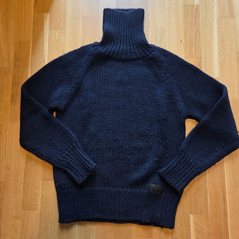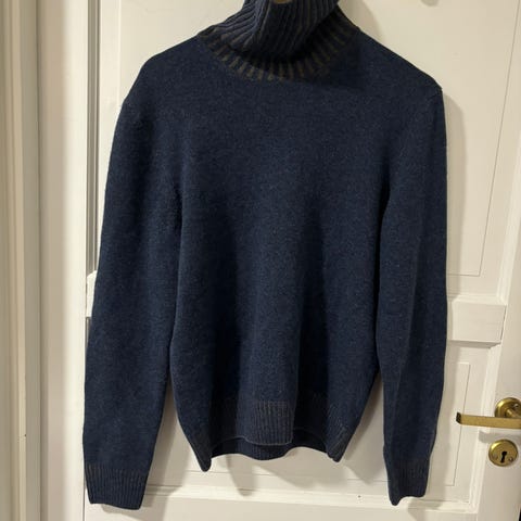 Blå ullgenser i ullblanding (80% ull). Made in Italy. Lite brukt og litt nuppete.