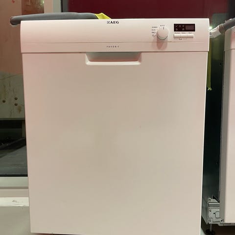 AEG underbygd oppvaskmaskin i hvit utførelse. Modellen er beregnet for integrering under benk. Fronten har et enkelt betjeningspanel med dreiehjul og display på høyre side. Maskinen har standard front med håndtaksløsning øverst på døren. Passer for montering på kjøkken der det er plass til underbygd oppvaskmaskin i standard bredde. Ytterligere spesifikasjoner som kapasitet, energiklasse og programvalg avhenger av nøyaktig modellbetegnelse.