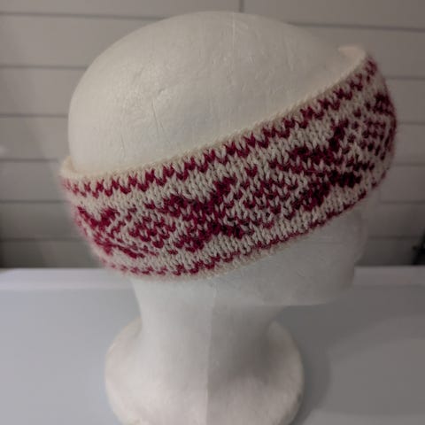 Nytt håndstrikket dobbelt Cortina pannebånd str 8-10 år. Strikket i garnet Sterk. 40% ull, 40% alpakka, 20% nylon.