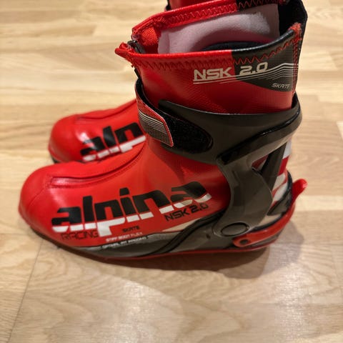 Alpina Elite JR 2.0 Duathlon langrennsstøvler i størrelse 39. Modellen er laget for duathlon/skøyting og klassisk, med høy ankelstøtte og hælkappe for bedre stabilitet. Overdel i syntetisk materiale med glidelås i front og borrelåsreim over vristen. Fôr i tekstil for komfort og varme. Fargekombinasjon rød, hvit og svart. Passer til bruk på langrennski med kompatibelt binding-system (se såle og egne bindinger for nøyaktig tilpasning).