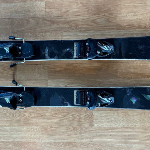 Völkl Twin Tip ski 148 cm med Marker bindinger i svart og hvit design med gule detaljer. Alpinski egnet for bruk i alpinbakke. Skiene leveres med monterte bindinger, som vises på bildene. Passer for alpinbrukere som ønsker et par ski med integrerte bindinger fra Völkl.