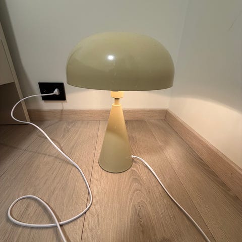Skjermen er dessverre ødelagt, går nok an å limes men selger i utgangspunktet lampen som fungerer som den skal, så kan skjermen medfølges om ønskelig. Lader medfølger ikke