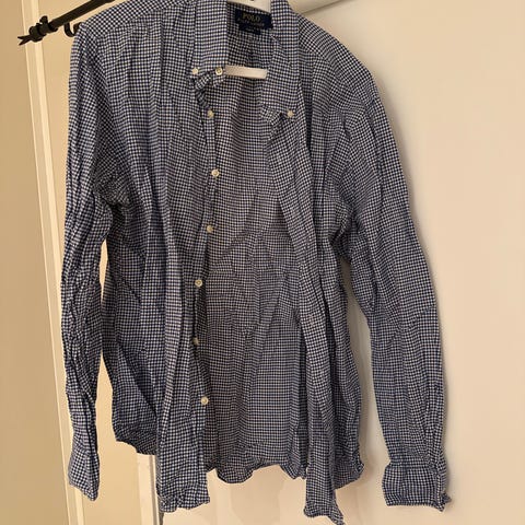 Ralph Lauren Polo piqueskjorte for herre i størrelse XL. Skjorten er svart og laget av bomull. Modellen har klassisk krage, kort erm og knappestolpe med tre knapper. Brodert logo på brystet. Passform merket som Slim Fit. Egnet som hverdags- og fritidsplagg., poloskjorten er pent brukt .