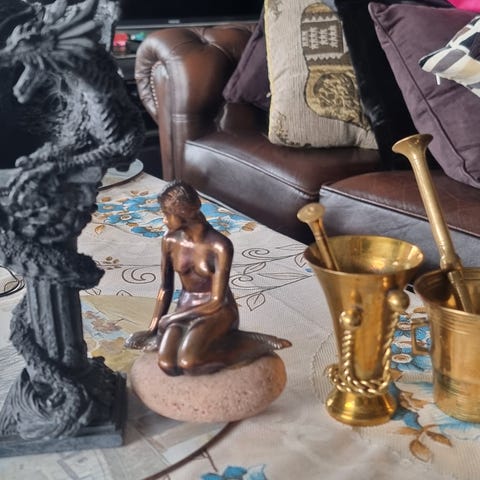Statuen forestiller en ildsprutende drage som vokter slottet.