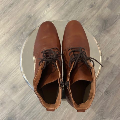 De er med lappen på og selges da de ble litt for store til meg. Jeg bruker 41/42 men disse er store i str- og er mer en 43 enn 42. Smale i lesten. Kule detaljer.