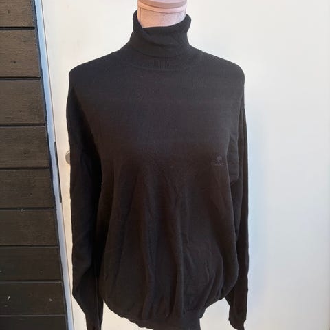 SAND Copenhagen genser for herre i størrelse L. Genseren er brun og har rund hals og lange ermer. Materialet er en ullblanding med 50 % ull og 50 % akryl. Genseren er pent brukt men den har et veldig lite hus som ble sydd på igjen den merkes nesten ikke (den vises på siste bildet)