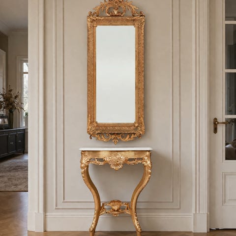 Eksklusivt konsollbord med speil – Antikk sølv/svart