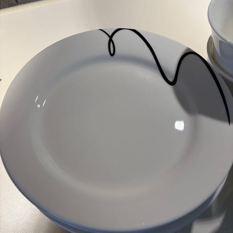 Modern house tallerkener i keramikk/steingods med todelt design i svart og gul. Dekorert med enkelt bladmønster langs kanten. Egner seg som middagstallerkener eller serveringstallerkener på kjøkken og spisebord. Antall tallerkener fremgår av bildene. Har 4stk og de selges for 150kr samlet😊 pakkes godt inn i bobleplast om det ønskes sending!