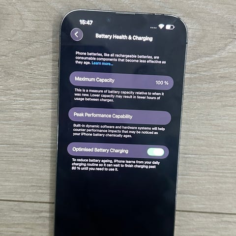 Apple iPhone 15 mobiltelefon med 128 GB lagringsplass.