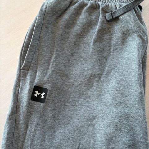 Under Armour joggebukse for herre i størrelse L. Buksen er svart og laget i polyester. Den har strikk og snøring i livet samt smal passform ned mot anklene. Egnet til trening, løping eller fritidsbruk.