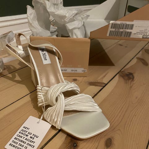 ASOS ballerinasko i størrelse 36. Skoene har spiss tå og en dekorativ rem over vristen med flettet sateng og påsydde perledetaljer. Overdelen har en lys, satenglignende finish, og innsiden har glatt fôr. Passer til bruk ved anledninger der man ønsker et mer pyntet uttrykk. Perfekt som brudesko, de ble bare litt små for meg
