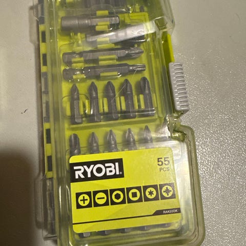 Helt nytt Ryobi bitssett med 55 deler.