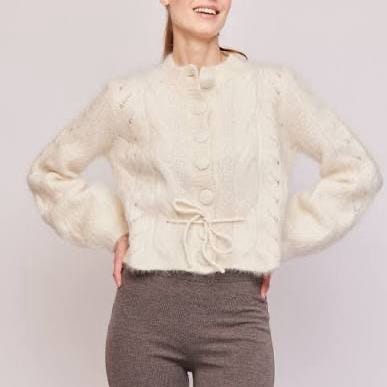 selges da den ikke blir brukt like mye. den har blitt brukt, men ikke nok. Den er utrolig god, klør ikke og er luftig. den har masse fine detaljer , og er en veldig fin genser til enhver sesong.
