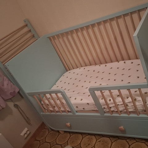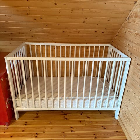 IKEA sprinkelseng i hvit farge selges. Sengen er pent brukt uten bruksmerker. Sengebunnen kan justeres i to ulike høyder. Madrass fra Jysk følger med samt to beskyttelseslaken. Madrassen er kun brukt med beskyttelseslaken, trekket er vasket. Må hentes i Heidal eller på Otta eller annet kan avtales.