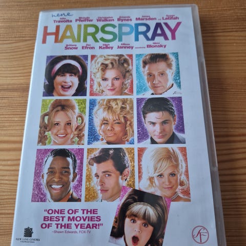 Søkeord Hairspray DVD musikal film komedie John Travolta Zac Efron Michelle Pfeiffer Queen Latifah Christopher Walken Amanda Bynes Nikki Blonsky 60-tallet musikk dans Baltimore klassiker feelgood familie filmkveld samleobjekt strøken plettfri som ny norsk tekst utgått filmperle sang glede humor underholdning kinofilm Broadway retro vintage mote hårfrisyrer TV-show talentkonkurranse mangfold vennskap drømmer Hollywood stjernelag New Line Cinema SF Norge musikkfilm samling nostalgi julegave bursdagsgave gaveide billig filmglede