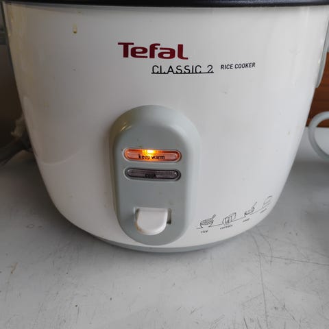 Selger meget lite brukt Menuett riskoker i hvit farge. Så god som ny. Kompakt modell med glasslokk og håndtak på sidene. Frontpanel med bryter for koking og varmefunksjon, samt indikatorlys. Innebygd innsats med hull for damping av mat. Egnet til koking av ris og damping av enklere retter på kjøkkenbenken.