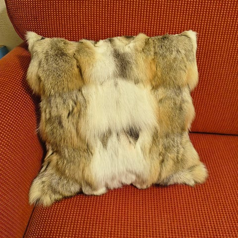 Dekorativ pelspute av rev, 47x47 cm. Tilvirket av buntmaker.