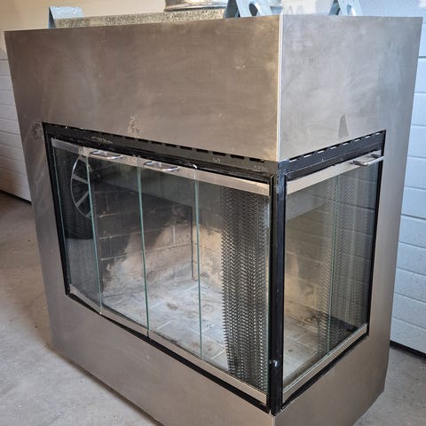Dette er en peis i vision-line serien som brenner rent og på grunn av tilluft systemet får du ikke røykdannelse som i vanlige peiser. Peis er demontert og klar for henting. Frontpaneler er skadet under demontering men dette er noe man selv kan designe og ettermontere med metall/ stein/ fliser etter eget valg. Ca 1 meter med røykrør på 200 mm med 2x45 grader benn følger med
