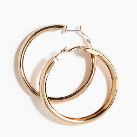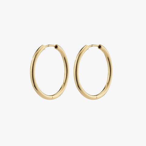 Store øredobber i sølvbelagt materiale. Klassiske runde hoops med glatt overflate. Helt ny/uåpnet.