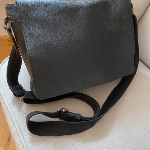 Rosenvinge skulderveske for dame i svart. Vesken har bred, justerbar skulderrem og en enkel, rektangulær fasong. Utvendig har den et diskret lommefelt i front. Innvendig er vesken delt med en glidelåslomme i midten, samt ekstra rom for organisering av mindre eiendeler. Lukkes med magnetknapp øverst. Passer til hverdagsbruk og til å bære med seg nødvendigheter som lommebok, mobil og nøkler.