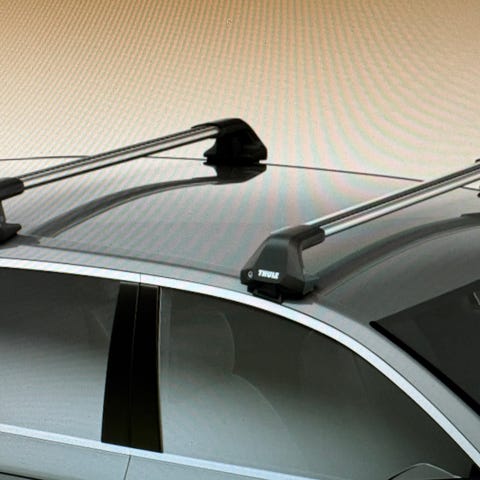 Tesla Y Takrails fra Tesla og Thule Dynamic L takboks samt Thule takheis