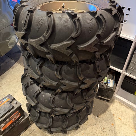 Begge bakbelter har skade og bør byttes. Koster 17500kr per stykk hos BRP