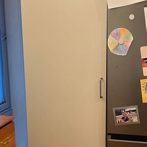 Gir bort to BESTÅ høyskap. Hvite med skapdører øverst og nederst, og med tre hyller i midten. Det er blitt boret hull nederst i begge skap for å kunne trekke ledninger igjennom, men ellers har skapene få bruksmerker.