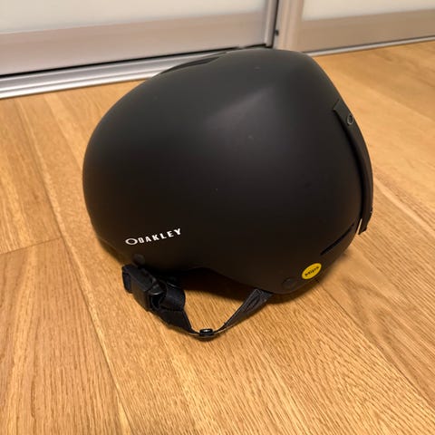 Oakley Mod1 skihjelm i hvit farge. Hjelmen har justerbar passform med strammehjul bak og øreputer med myk polstring. Ventilasjonsåpninger på toppen og baksiden bidrar til luftgjennomstrømning. Modellen er egnet til bruk i alpinbakke og snowboardkjøring. Innvendig merking med serienummer og produksjonskode.
