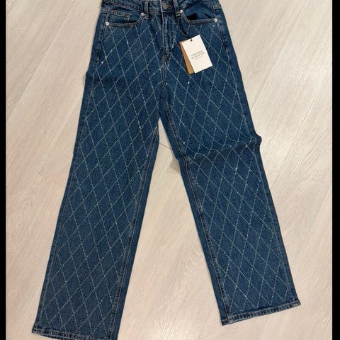 Kjempefin ubrukt jeans med små stener selges.