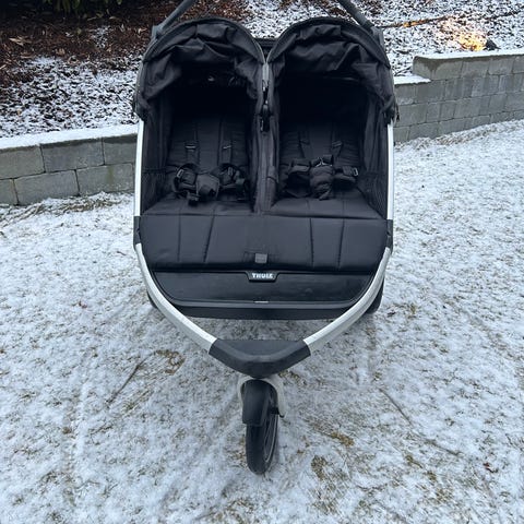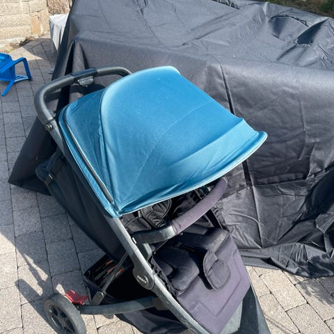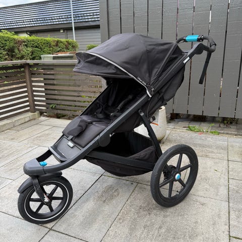 Thule barnevogn sammenleggbar i blå og svart farge.