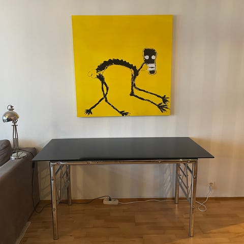 Jeg har brukt dette som pult, men har også sett at noen har spraylakkert understellet og lagt over en finér plate. Flere muligheter her.