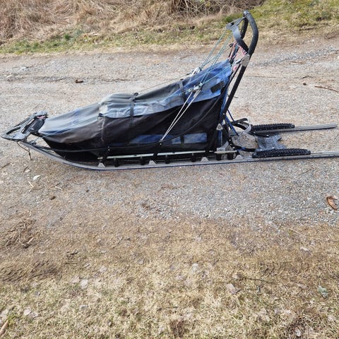 Hundeslede pent brukt til hobby/fritid med bare 3 hunder. Inkl linesett og snøanker.