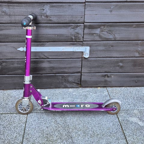 Micro sparkesykkel i god stand med mye bruk igjen. Den har alltid blitt lagret i bod og har veldig lite rust, bruksmerker finnes naturligvis. Nypris 1295,-
