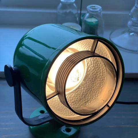 En gammel vegglampe/sengelampe fra Fløistad. Har normalt med bruksspor mtp alder. Har ujordet støpsel. Se bilder.