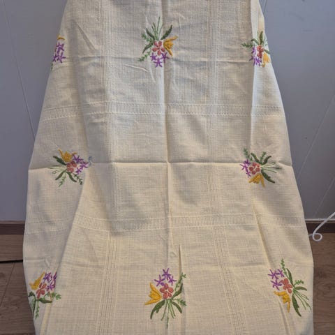 Vintage brodert løper - fargerike blomster, håndlaget retro dekor