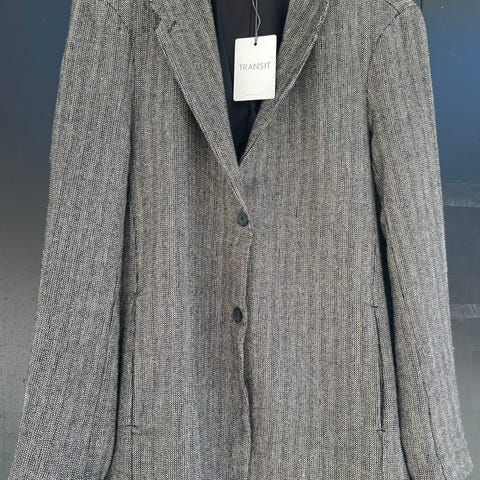Jakken har en god lengde og er lett oversized. En stor knapp i front. Gode lommer.