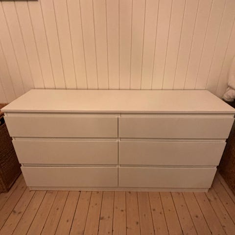 Pent brukt MALM kommode, 6 skuffer, hvit