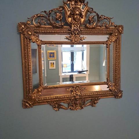 Selger et stort antikk speile med fasett slipt orginal