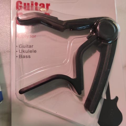 Pakke med capo stemmeapparat plekter holder og fem plekter. farger på plekter varierer.