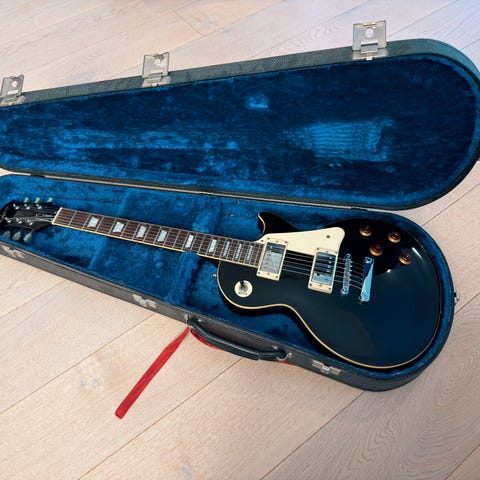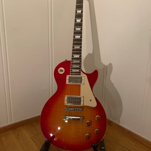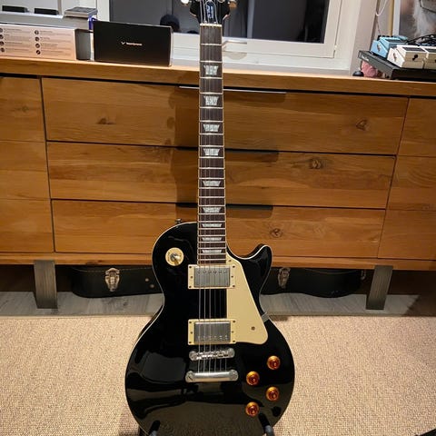 Selger min pent brukte Epiphone Les Paul Standard 50s. Dette er et eksemplar fra den nyeste «standard» serien til Epiphone, og er inspirert av les-paul-er fra 50-tallet. Disse gitarene er utstyrt med «long neck tenon», noe som sies å forbedre gitarens sustain. God gitar som låter som ei kule. Dette er masse gitar for pengene etter min mening.