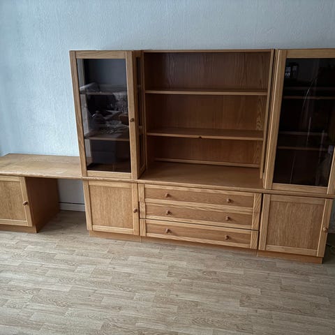 pent brukt Vitrineskap i furu gis bort. må hentes på Stathelle.
